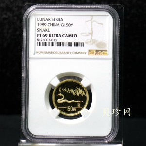 • 【890204】1989中国己巳(蛇)年-蛇行图8克精制金币