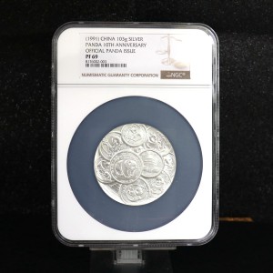 • 【911112】1991年熊猫金币发行十周年3.3两纪念银章