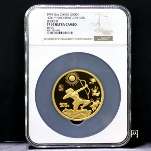 其中第二组中有“黄白情侣”之称的两枚5盎司币摄人眼球,这便是“后羿射日”金币和5盎司“嫦娥奔月”银币。币面上后羿矫健的身姿与嫦娥婀娜的体态形成鲜明对比,给人在视觉上产生冲击,印象深刻。后羿射日是民间传说,人们难耐天上十个太阳的烘烤,后羿力大无穷,射掉九个,留下了唯一的一个让人们得以在适宜的温度下生存。这是有名的后羿射日的。有英雄的出世,就少不了美人的相随,后羿立下盖世神功后,受到了人们的尊敬和爱戴,又是人们眼中羡慕的郎才女貌恩爱夫妻,自然就受到小人的记恨,此后就出现了后羿妻子嫦娥凄美奔月的故事。相传,中秋拜月的风俗就源于此