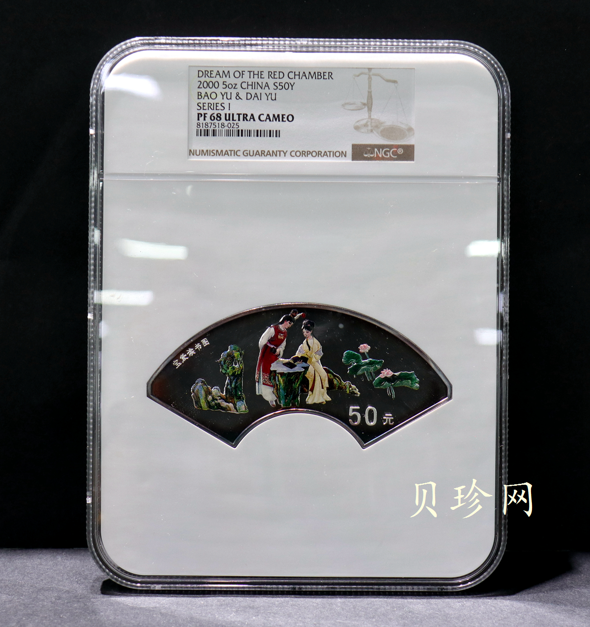 单币:2000年中国古典文学名著——《红楼梦》彩色金银纪念币(第1组)-宝黛读书5盎司扇形彩色精制银币