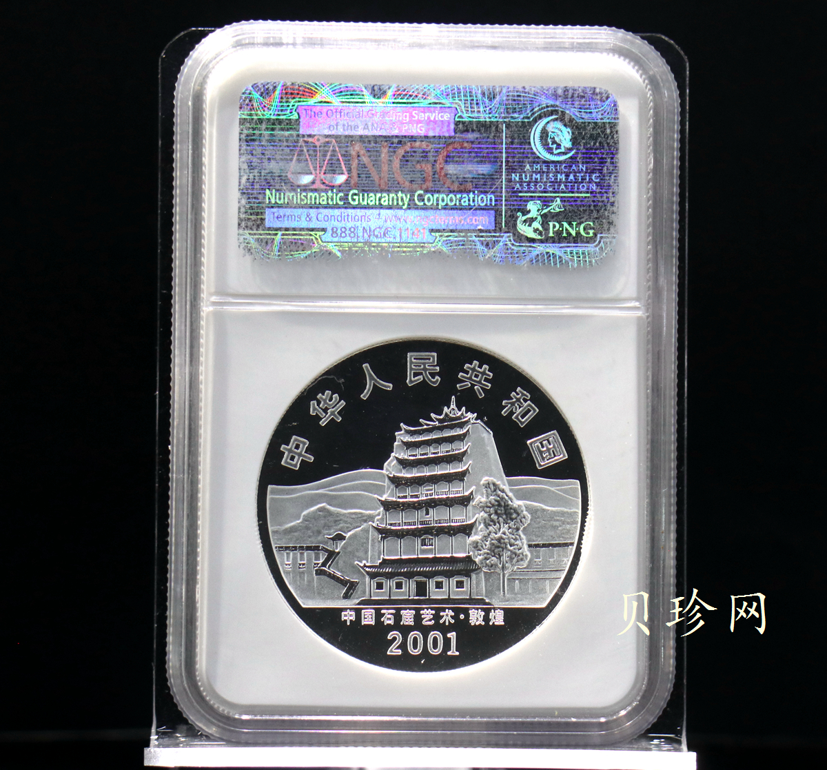 单币:2001中国石窟艺术(敦煌)金银纪念币-盛唐菩萨像2盎司高浮雕精制银币
