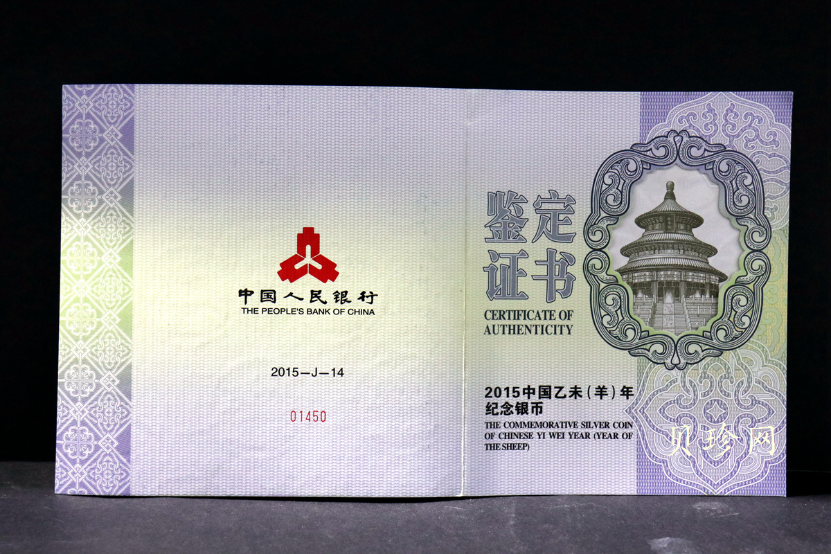 在2015乙未(羊)年金银纪念币上,一只传统装饰造型的山羊和一只写实的盘羊带来了新年的喜庆,也带来了人们企盼的福寿绵长。