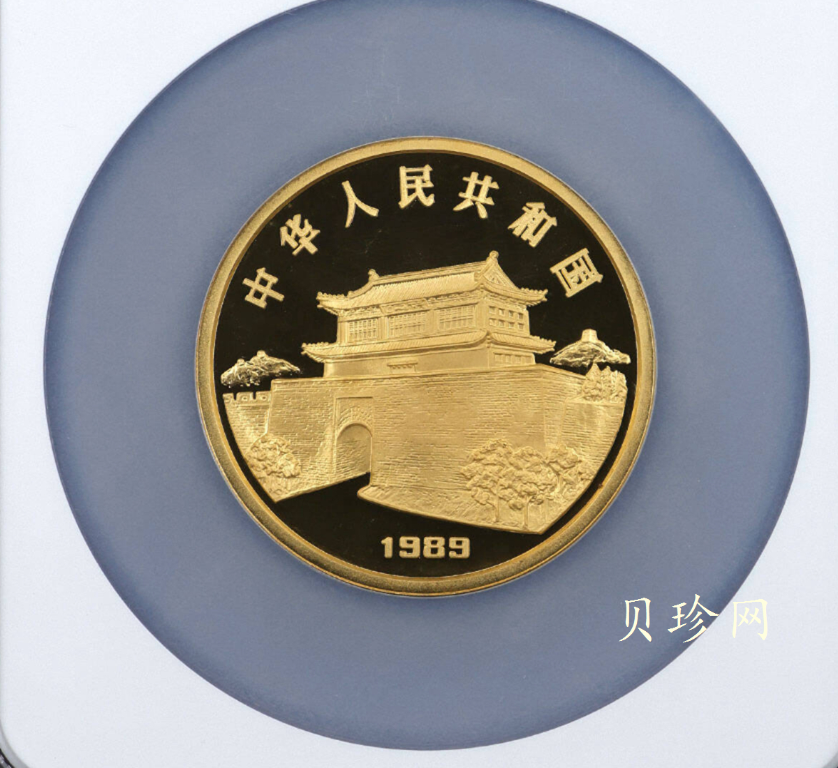 1989“中国己巳(蛇)年”金银铂纪念币的两幅正面图案,其中之一取景山海关。蛇的形态与长城类似,天下第一关,正是蜿蜒万里的长城蛇头。币面取景又是天下第一关的箭楼,以箭楼之高大气势,强调“天下第一关”特殊的地理位置。