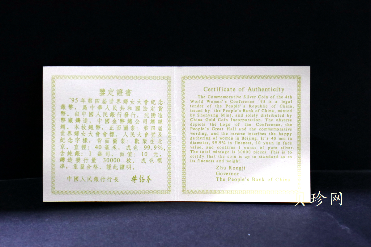 单币:1995年联合国第4次世界妇女大会1盎司普制银币