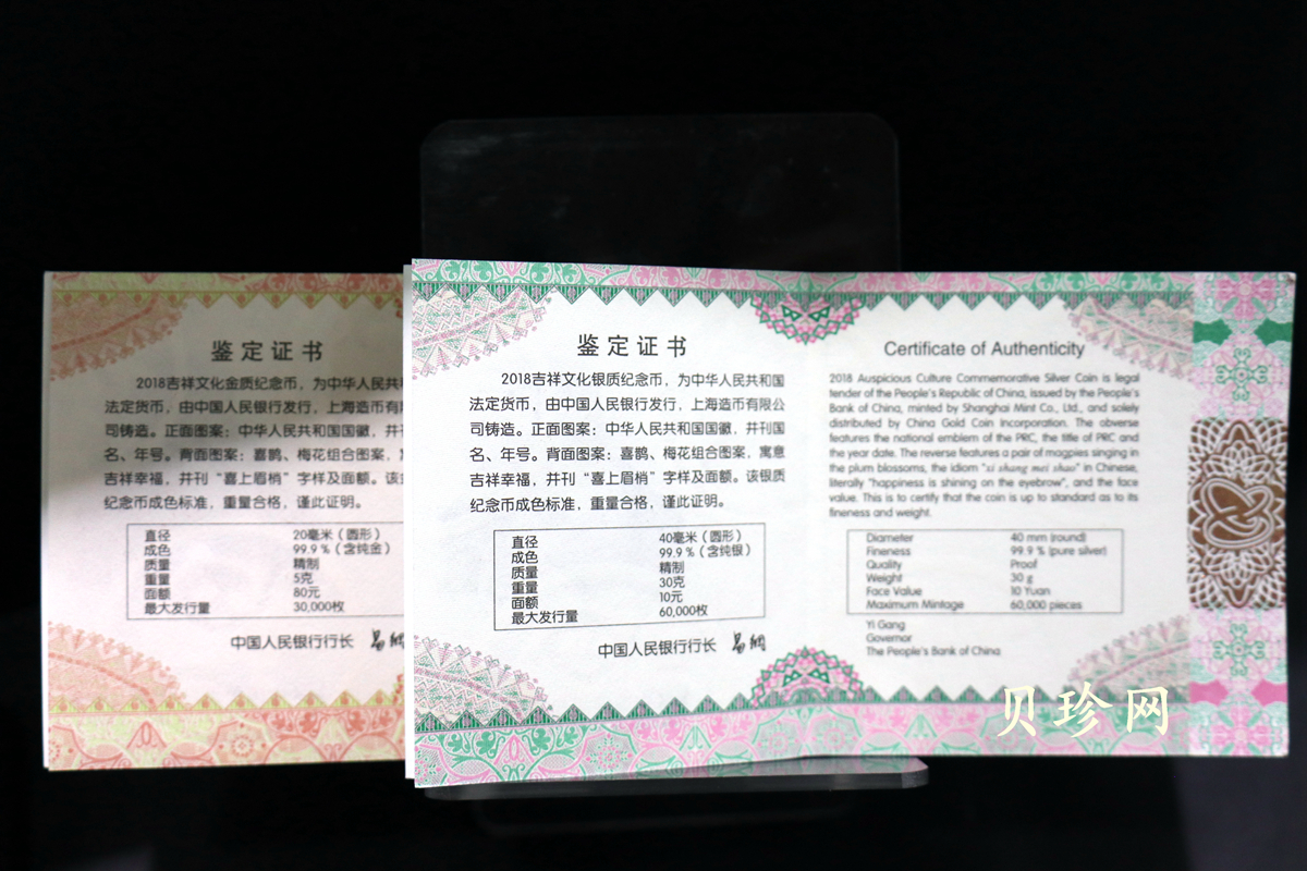 为满足广大人民群众对生命的关注、对美满生活的向往以及对自身价值的追求,中国人民银行定于2018年3-6月发行2018吉祥文化金银纪念币一套。该套纪念币共8枚,其中金币4枚,银币4枚,均为中华人民共和国法定货币。纪念币的币面图案分别表现对老人健康长寿的祝愿(寿居耄耋),发行日为2018年3月22日;对生儿育女的祝福(榴开百子),发行日为2018年4月20日;对美满婚姻的祝福(珠联璧合),发行日为2018年5月18日;对吉祥幸福的祝愿(喜上眉梢),发行日为2018年6月20日等四个主题。该套纪念币是继中国人民银行于2015年1月23日发行2015吉祥文化金银纪念币、2016年3-6月发行2016吉祥文化金银纪念币、2017年3-6月发行2017吉祥文化金银纪念币后,发行的该系列第四组金银纪念币。