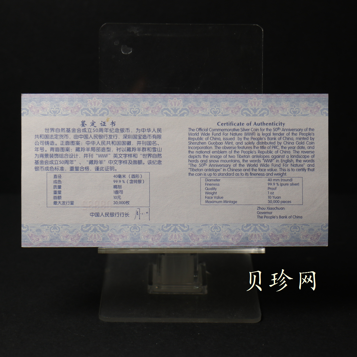 世界自然基金会,简称WWF是在全球享有盛誉的、最大的独立性非政府环境保护组织之一,自1961年成立以来,WWF一直致力于保护事业,在全世界拥有将近520万支持者和一个在100多个国家活跃着的网络。世界自然基金会与中国有着一段不解之缘。世界自然基金会成立50周年,中国人民银行发行了一套纪念金银币,尤其是其中的金币,极富现代感和象征寓意的设计让人印象深刻。