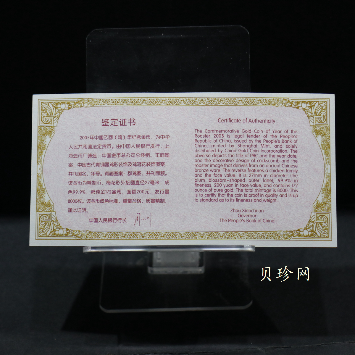十二生肖,古人有称之为十二禽、十二兽等。生,指人的生年;肖,即类似、相似之意,即人生与某种动物类似。生肖不仅是一种形象生动的纪年、纪月的方法,更与每个人结合起来,赋予了一种神奇的性格。十二生肖就是用十二种动物来表示人的生年的一种传统文化,已流传千年。生肖文化素有历史渊源,它广泛地介入到中华文化的各个领域,影响着人们的生活和思维,已成为中华民俗的一个重要组成部分。于是中国人民银行定于2004年10月23日发行2005中国乙酉(鸡)年金银纪念币一套。该套纪念币共12枚,其中金币6枚,银币6枚,均为中华人民共和国法定货币。