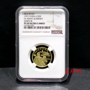 • 【972001】1997年中国丝绸之路金纪念币(第3组)-法显取经图1/3盎司精制金币