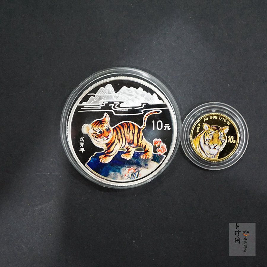 彩色虎币的设计与本色币形成强烈的反差,热烈、质朴、清新、纯真而动人,其放任不羁的表现手法和稚拙原始的趣味让人推崇。造型的大幅度夸张,装饰手法的随意自然,使之洋溢着浓厚的浪漫气息。这里表现的虎,不是本色本真的,而是有自己独特的艺术语言和表现形式。色彩绚丽的画面铺排,线条流畅的老虎造型,显得那么朴实优美,散发着生机勃勃的审美效果。