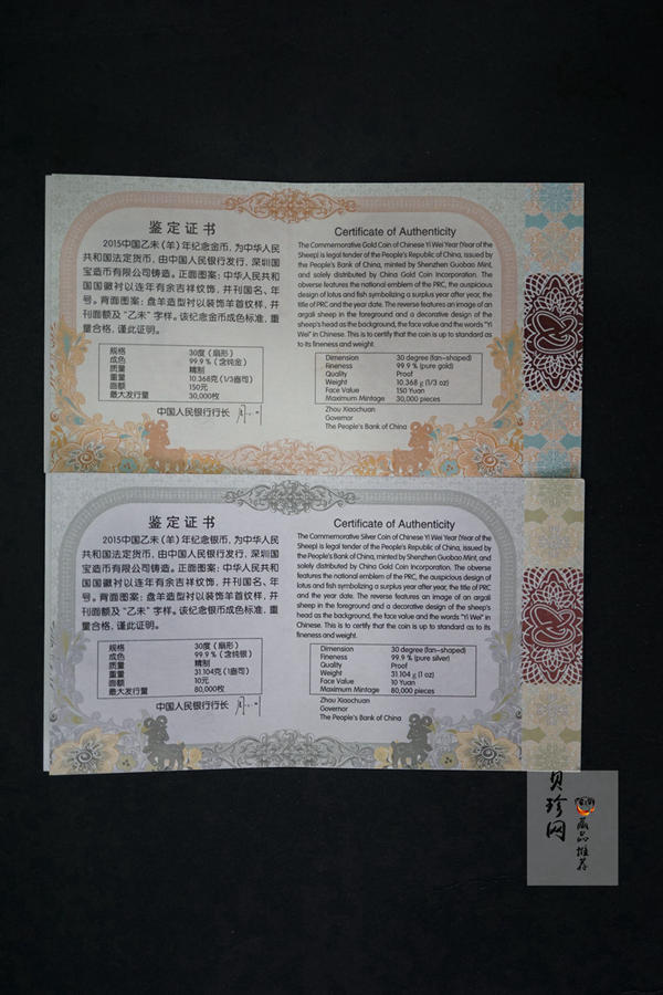 套币:2015年乙未羊年生肖扇形精制金银币2枚一套