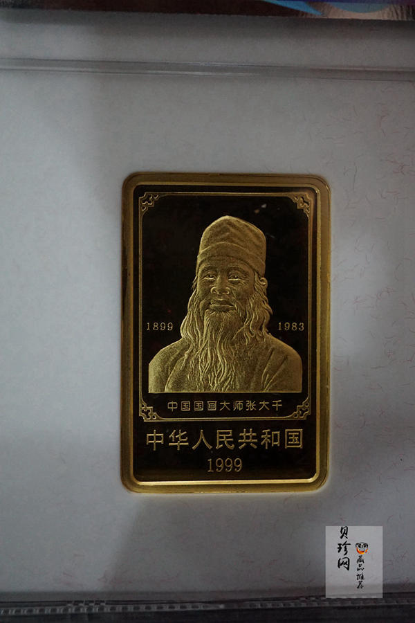 金银币中曾经有两个系列表现了张大千的经典绘画作品,包括生肖系列和中国近代国画大师张大千系列。1999年,中国人民银行为了纪念张大千对中国绘画事业作出的杰出贡献,发行了一套“中国近代国画大师张大千”金银纪念币。