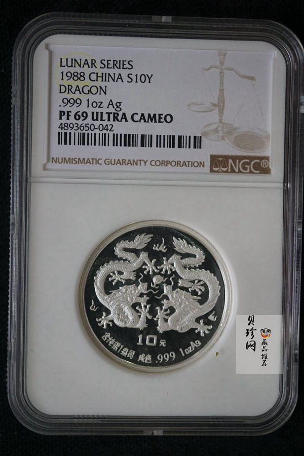 1990年,美国克劳斯出版社和《世界硬币新闻》联合发起的世界硬币大奖评选活动揭晓,1988“戊辰( 龙)年”9枚金银铂纪念币中,正面图案为长城,面额100元,重量为12盎司的精制银币荣获“最佳银币奖”,这也是中国现代金银纪念币第五次在此项活动中夺冠。