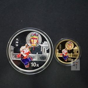 套币:2004年中国民俗-元宵节彩色精制金银币两枚一套