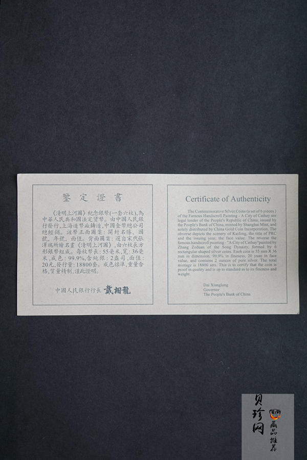 套币:1998年中国古代名画系列(清明上河图)2盎司长方形精制银币套币