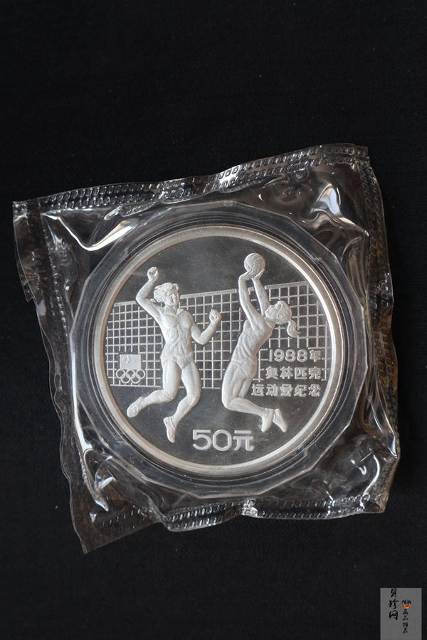 “女子排球”银币的背景为纵横之线,构成的排球网。在李小川的笔下,其纵其横,均为一紧二直,绷得过于僵硬。此外,作为背景,球网占得画面又略显大了些。大而牢固,这是否有不可逾越的暗示?实际中国女排在第24届奥运会上的表现不尽如人意,只是在第三、四名比赛中,以3比0战胜日本,夺得铜牌。