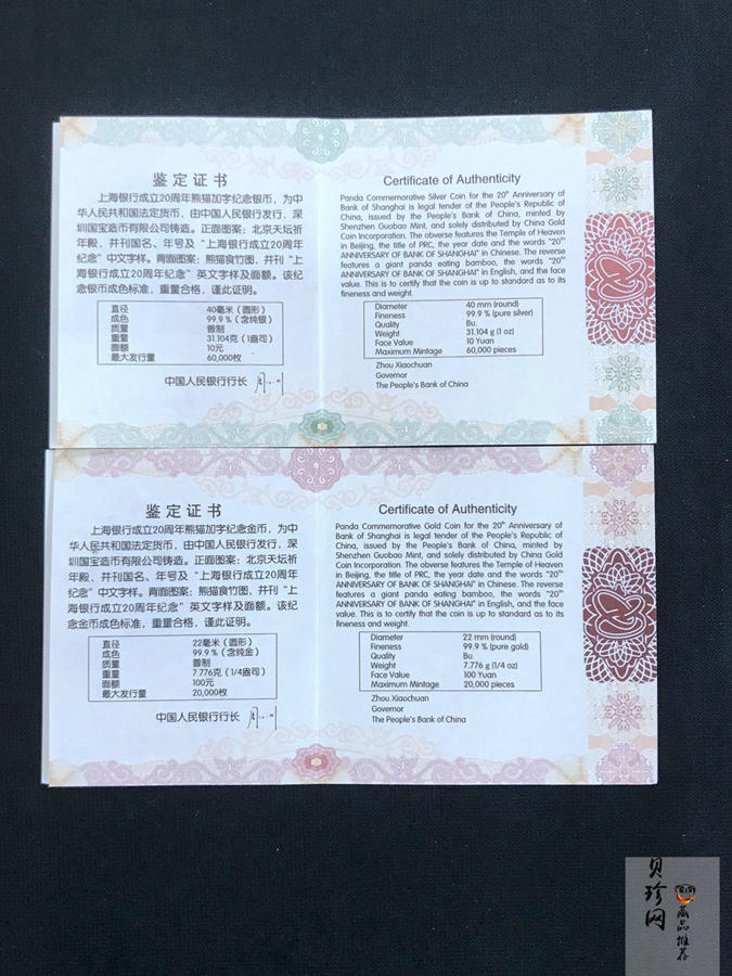 套币:2015年上海银行成立20周年熊猫加字普制金银币2枚一套