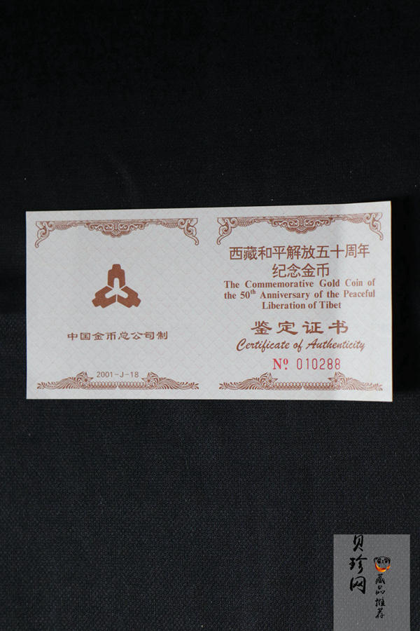 • 【010501】2001年西藏和平解放50周年金质纪念币1/2盎司精制金币