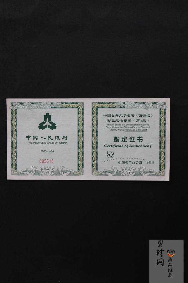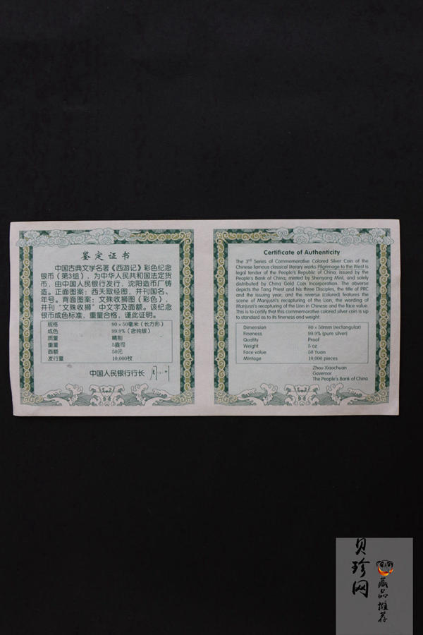 • 【050704】2005年中国古典文学名著《西游记》第(3)组-文殊收狮图5盎司长方形精制彩银币