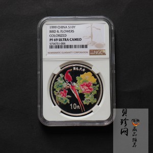 单币:1999年国色天香1盎司纪念彩色精制银币