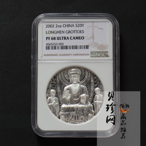 • 【020505】2002年中国石窟艺术(龙门)金银纪念币-佛像图2盎司精制银币