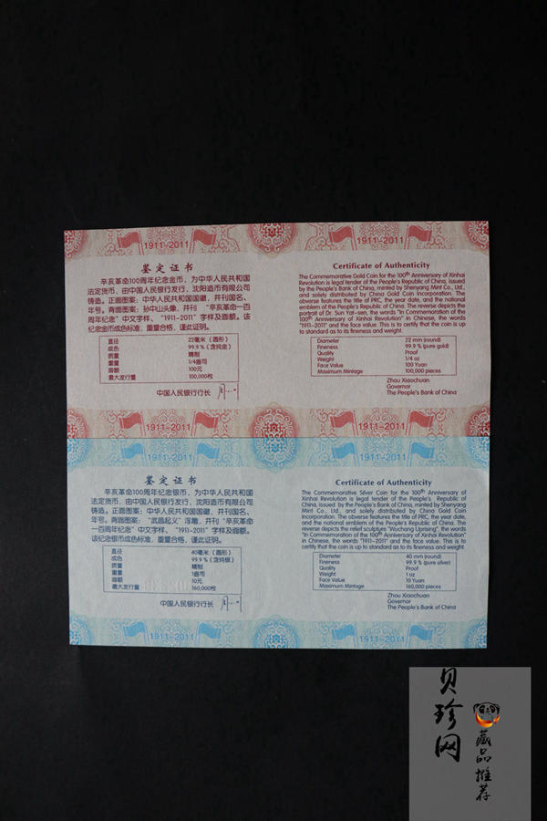 套币:2011年辛亥革命100周年金银币2枚一套