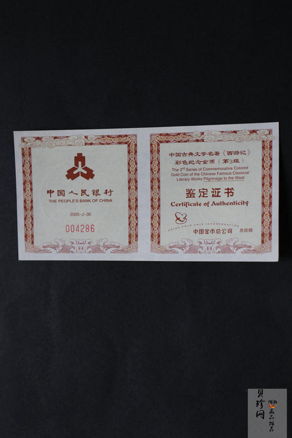 【050702】2005年中国古典文学名著《西游记》第(3)组-收月兔图1/2盎司精制彩金币