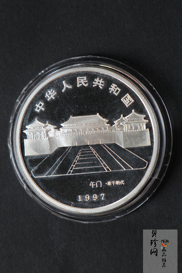 1997年,中国人民银行以“北京故宫博物院”为主题,发行了一套金银纪念币。包括1/4盎司金币(四枚)、1/10盎司金币、1盎司银币(五枚)。故宫是世界上现存最大最完整的古代宫殿建筑群,是人类珍贵的文化遗产。所以“北京故宫博物院”金银纪念币将表现内容主要放在了故宫的建筑上面,主要表现了故宫午门、金水桥、乾清宫、乾清宫内景、御花园以及铜狮等一系列具有代表性的建筑。