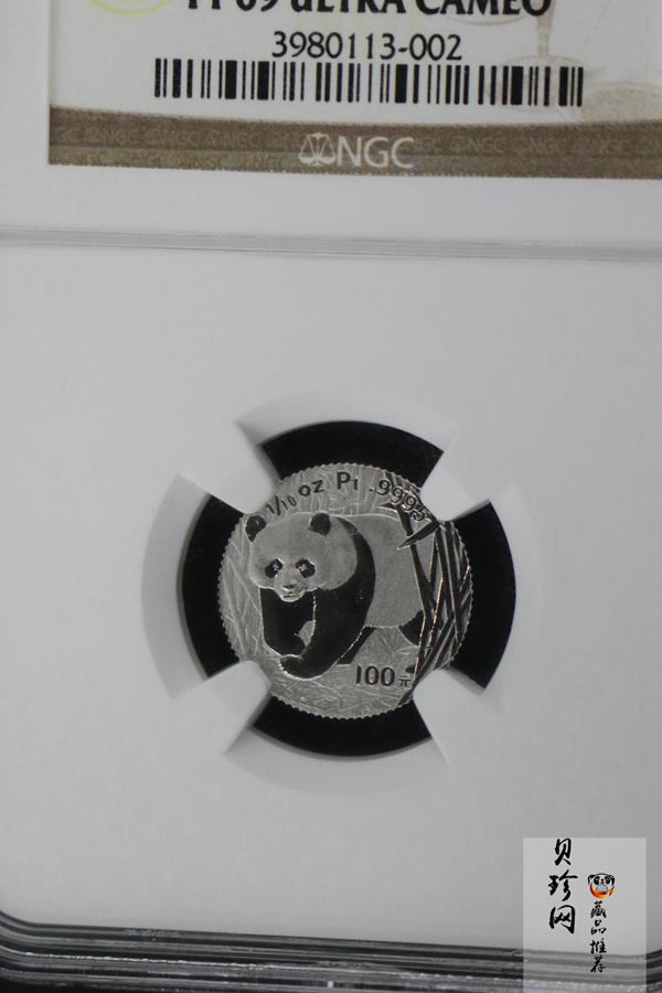 单币:2002年中国熊猫金币发行20周年银铂纪念币1/10盎司精制铂币