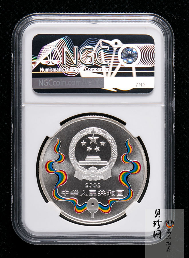 • 【021101】2002年中国乒乓球队建队50周年纪念银币1盎司精制银币