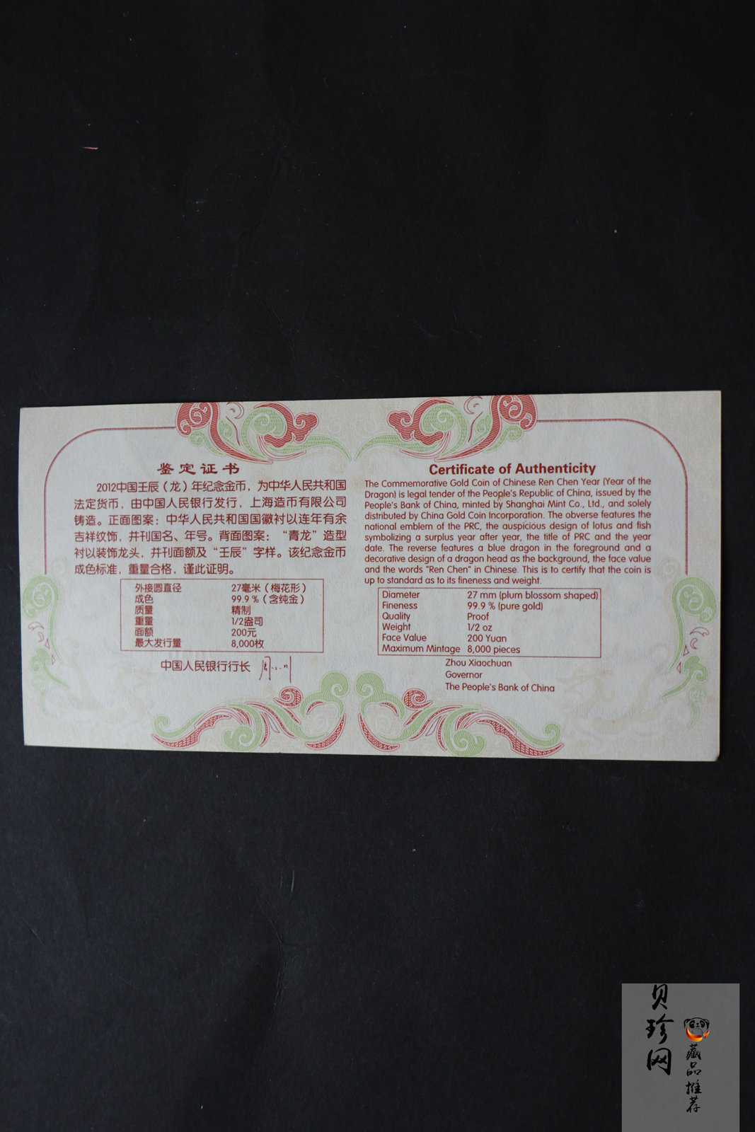 【111507】2012年壬辰龙年生肖1/2盎司梅花形精制金币