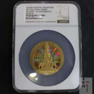 单币:2014年中国佛教圣地-峨眉山-四面十方普贤菩萨5盎司精制金币
